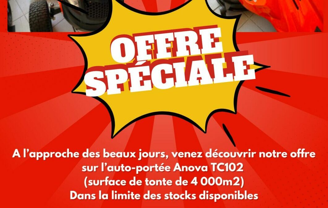 Venez découvrir notre offre : Auto Portée Anova TC102 au prix remisé de 2 999 € (surface de tonte 4 000 m2)